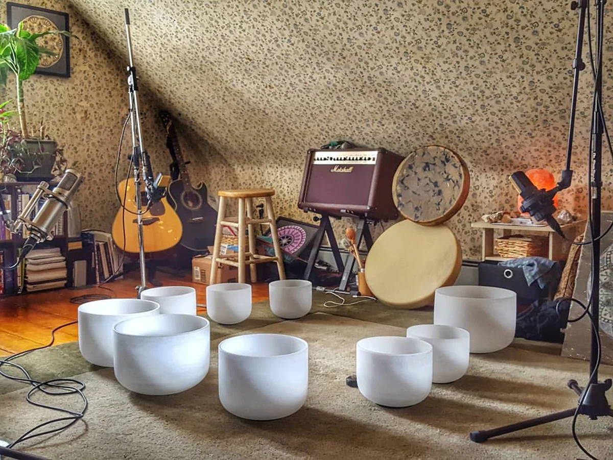 Working with the sound of musical drones is something that I am doing a lot these days in my Sound Healing Journeywork workshops. In music, a drone is an extended harmonic or monophonic accompaniment where a note (or a chord) is continuously sounded throughout a piece of music. Crystal singing bowls function quite perfectly as drones when they are played in a way that allows their tones to ring out continuously, which is why I believe so many people love the sound of singing bowls and love the experience of a meditation accompanied by them. This type of sound and it's effects on us are familiar, it itches at that hidden part of ourselves, the deepest essence of who we truly are, the part of us left hidden behind the veil as we've entered into this 'physical reality' hologram.